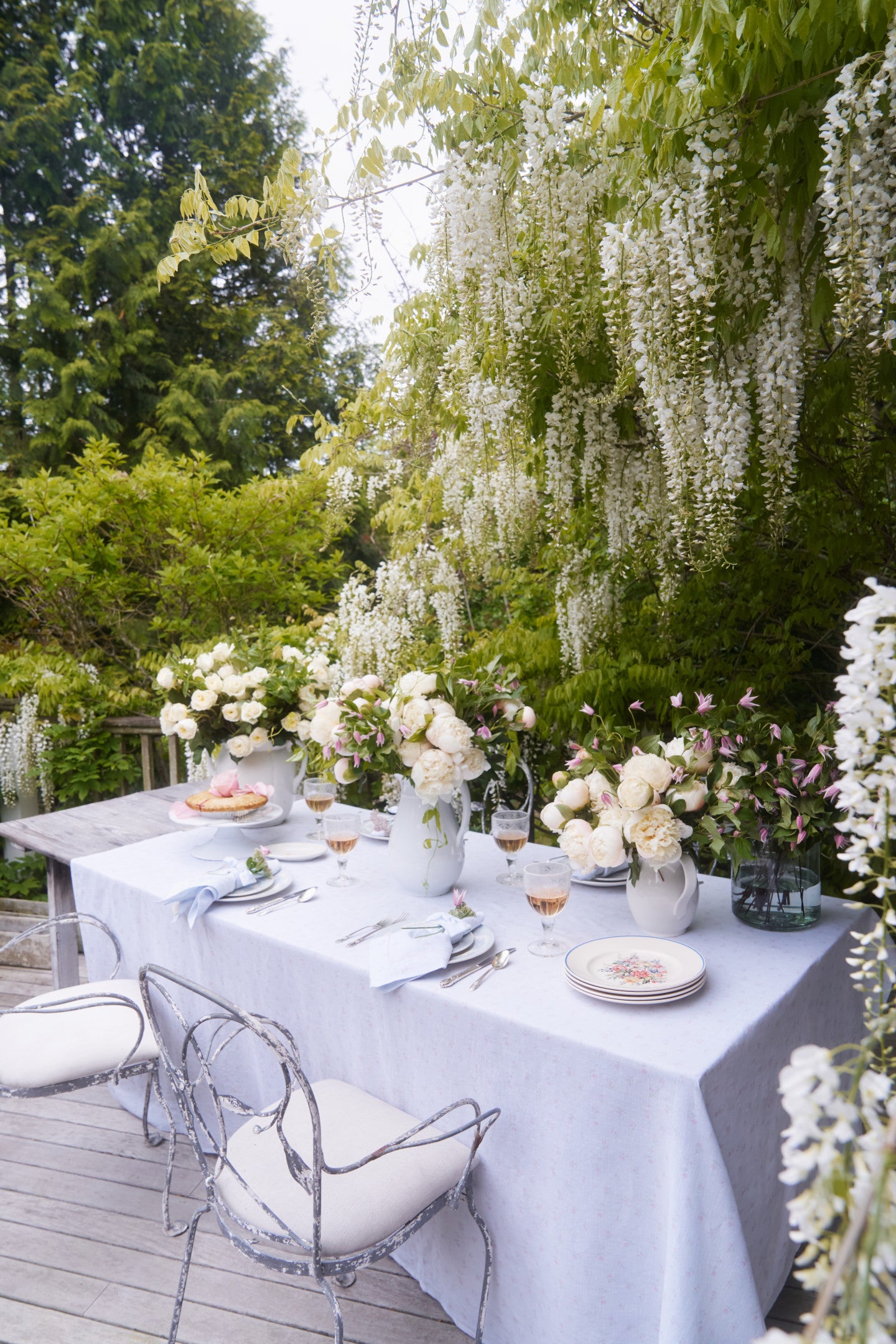 Refresh your space with this lovely yarn-dyed printed table linen featuring a ditsy floral print all over.