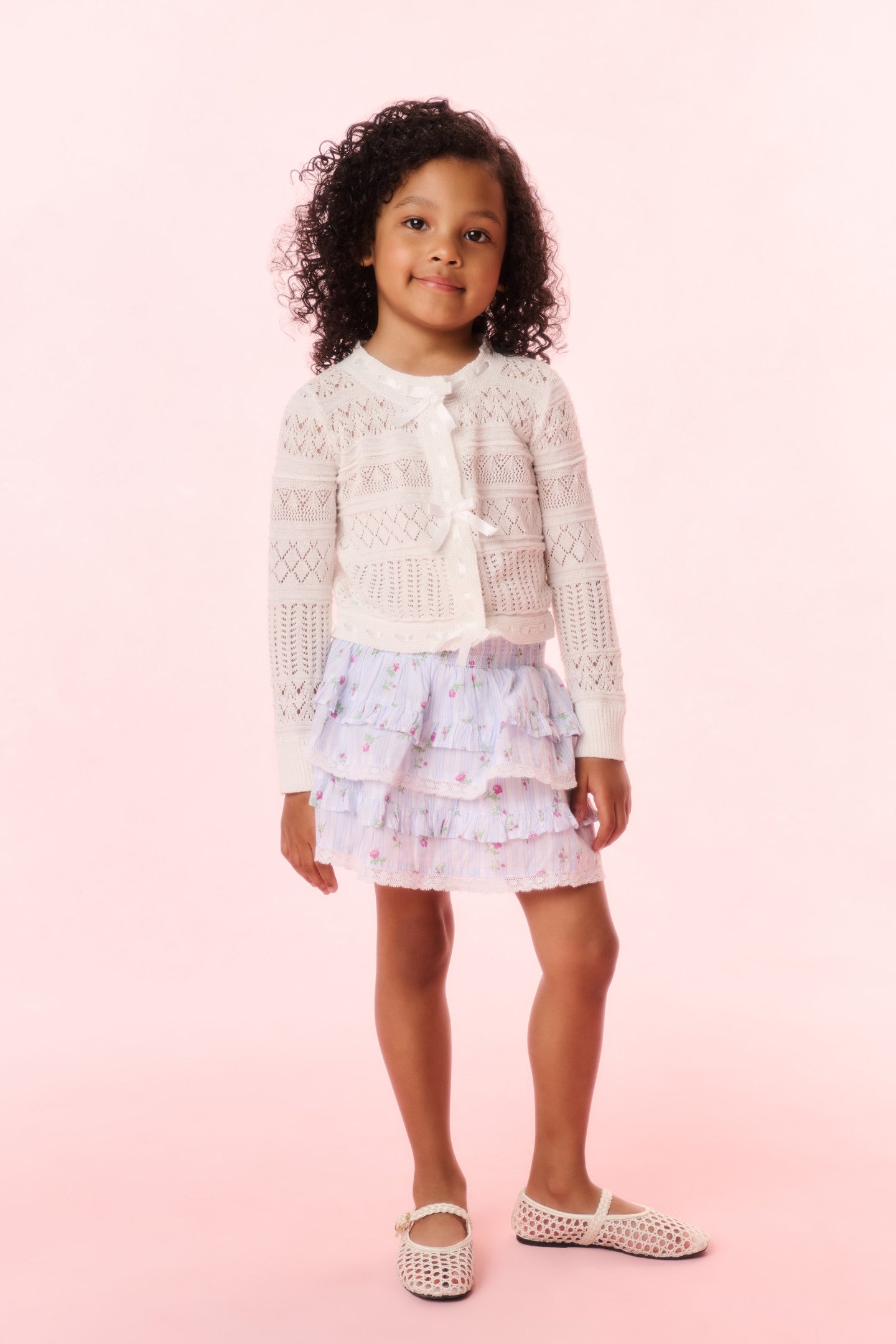Meet our beloved Billie Skirt in 100% cotton. Below a wide smocked waistband, the skirt falls to two shirred tiers with ruffle details.
