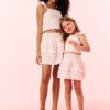 Meet our beloved Billie Skirt in 100% cotton. Below a wide smocked waistband, the skirt falls to two shirred tiers with ruffle details.