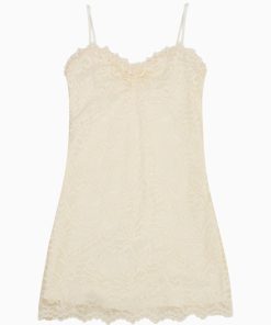 So sweet in the Siofra Dress. This pretty piece stuns with a lace-adorned fabric with scallop details, thin spaghetti straps, and a frayed neckline. The dress comes fully lined.