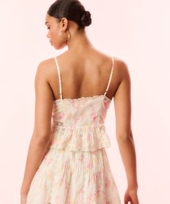LoveShackFancy Women’s Amrina Cotton Floral Skirt | White Peach