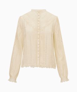 Feminine and sophisticated in the Aralina Blouse. Designed from a luxe, silk habotai fabric, this chic, Victorian-inspired top features a high collared neck, long blouson sleeves with snap closures, and a lace yoke with self-covered buttons at the front with snap closures.