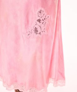 Introducing the Bier Dress. This gorgeous slip dress stuns with a solid charmeuse silk blend fabric with a hand-dyed-like print all over. The midi dress features vintage-inspired laces at the neckline and hem adorned with shell-and-pearl embellishments.