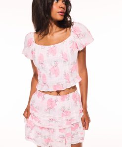 Everyone’s favorite Breonna Top returns as part of our Heirloom Print Capsule featuring our signature Rosa Beaux print made-to-match our Hair & Body Perfume Mists. This corset-style top has a wide open neckline with puffed sleeves that can be worn on- or off-the-shoulder. The pintucked bodice is fitted with interior boning and a tiny v-shaped peplum ruffle at bottom.