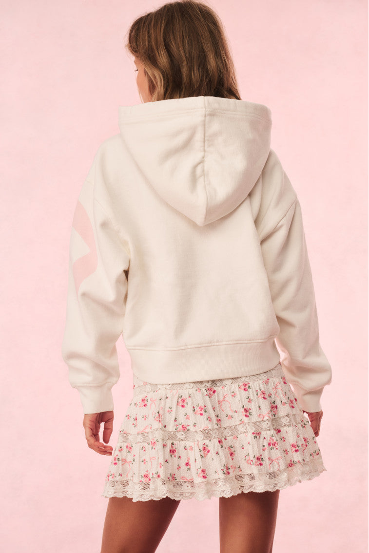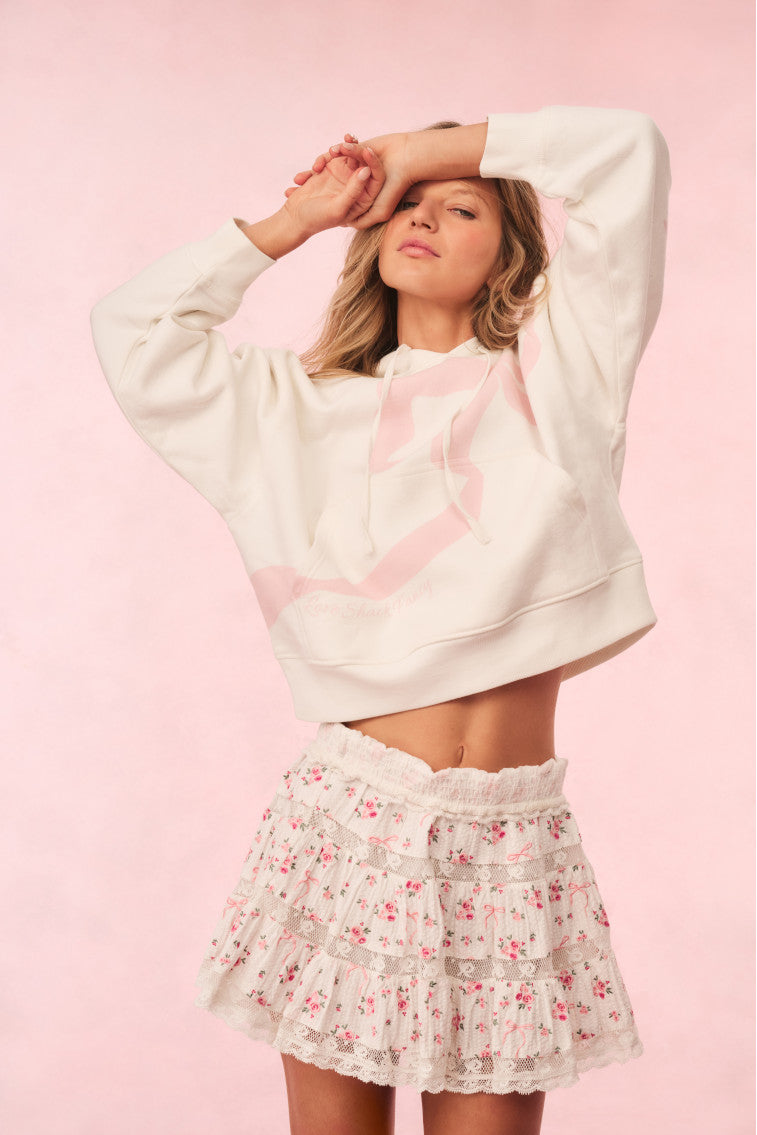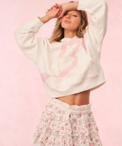 Stay cozy and cute in our Brunella Hoodie. This pretty fleece sweatshirt arrives in 100% cotton featuring an oversized winding bow printed on the front. The hoodie includes long sleeves with ribbed cuffs and a ribbed hem.