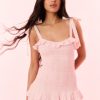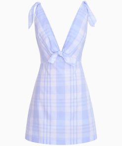 Forever charming in the Brynnie Dress. This pretty mini debuts with a crisp, cotton yarn-dyed fabric inspired by the construction of a scarf. The A-line mini features a scarf as a bodice that ties at the shoulders and the front. The piece is completed with a zipper.