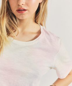 Our Calix Tee returns, your new favorite t-shirt in 100% hand tie-dyed cotton with distressed edges. This easy top has a loved look with its classic scooped crewneck, short sleeves and relaxed fit. Pair it with one of our many Ruffle Mini Skirts.