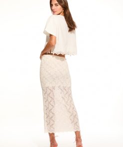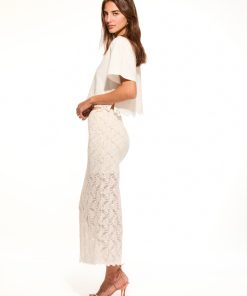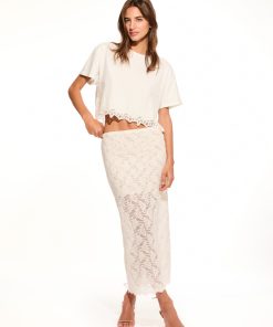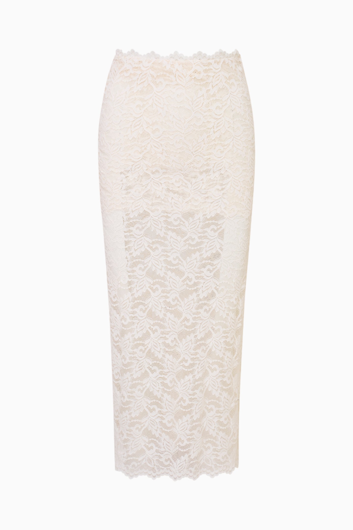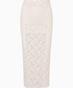 Introducing the Clooney Skirt. This stretch lace, midi skirt is effortlessly chic with scallop at the top edge and self start scallop at the bottom hem. The skirt comes with a lace lining featuring a scalloped edge. The waistband is elasticated making this piece easy to pull on.