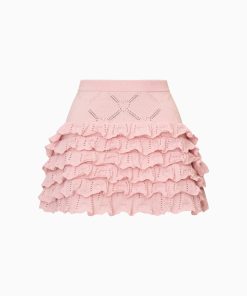 Feminine and flirty in the Kalliope Skirt. This pretty mini debuts with a dry-handed cotton yarn featuring our sweetheart argyle. The unlined skirt is slightly sheer at the top through pointelle detailing. Ruffle tiers adorn the skirt with rib scallop trims and the waistband is elasticated and encased in a rib stitch for ease and comfort.