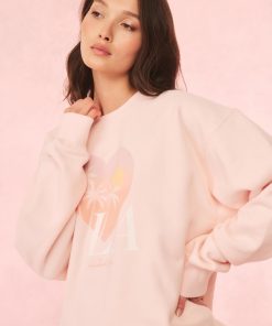 Introducing the LA Pullover. In support of the Los Angeles community and all those who lost their homes in the devastating wildfire, we’re donating 100% of proceeds from the LA Pullover to Altadena Girls – an incredible organization providing emotional, social, and mental health support to teens affected by the Eaton Fire. This cozy pullover features a limited-edition LA-inspired print with a sunset heart, palm trees, LA lettering, and LoveShackFancy printed beneath. The sweatshirt features a ribbed collar and ribbed sleeve cuffs.