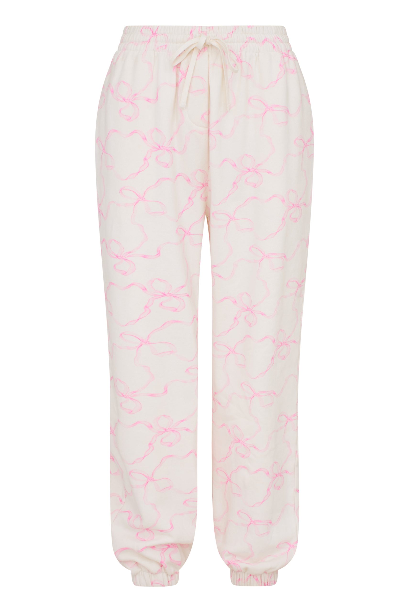 Loving on the Lillia Sweatpant. Designed from an ultra-soft, brushed back fleece, these cozy pants feature our signature Luna Rose Bow on the front of the plants. Pair with the Pierre Crop Hoodie for a full set.