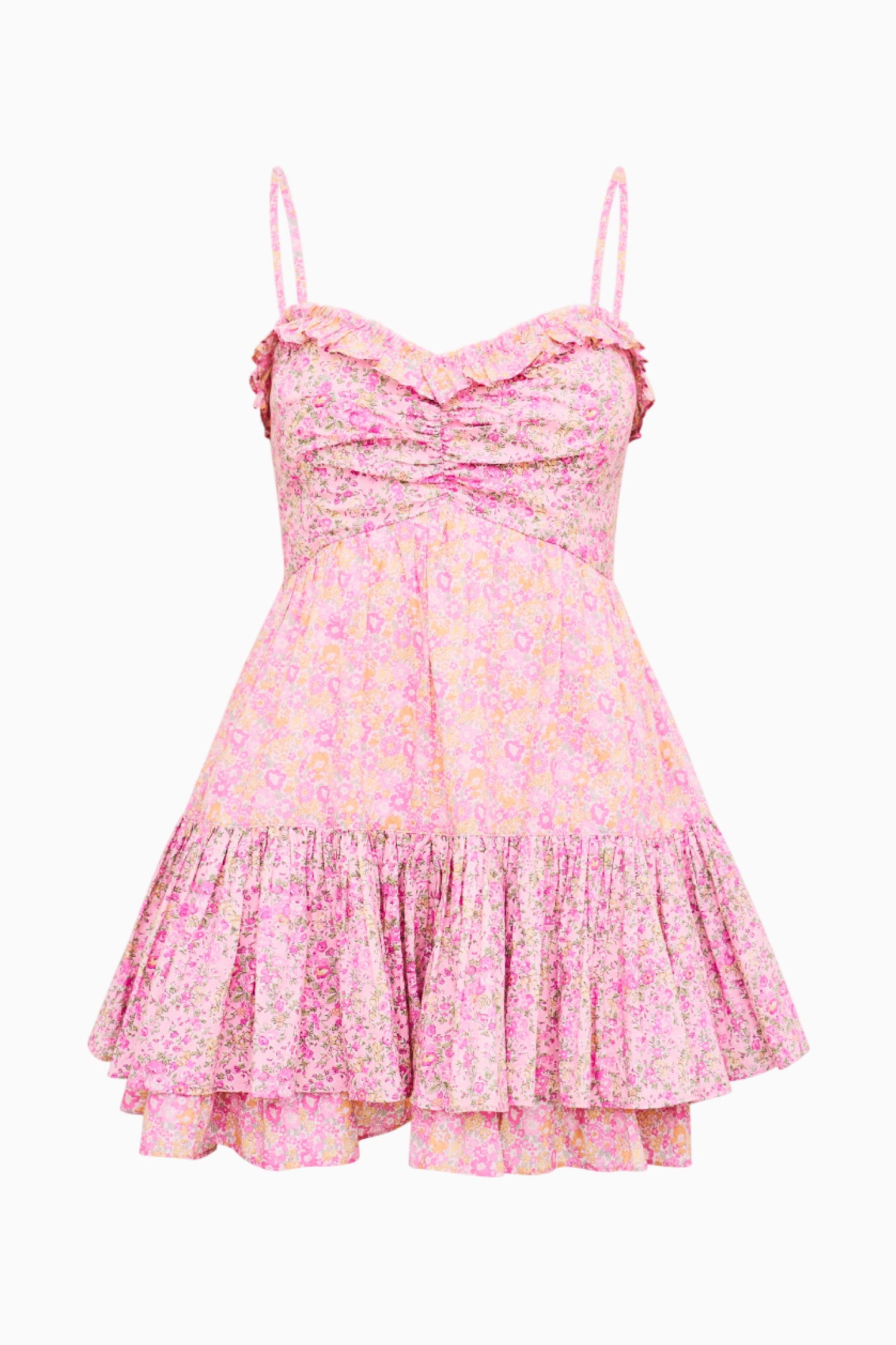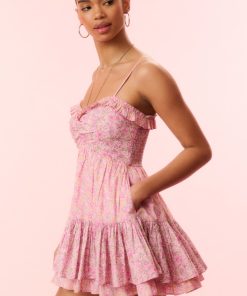 Our best-selling Linny Dress returns as part of our latest capsule collection made with Liberty Fabrics. The Linny Dress stuns with Liberty’s Tana Lawn™ cotton fabric with a vibrant floral print. She begins with tiny spaghetti straps, a sweetheart neckline with fluttering ruffles all over above the ruched bodice that then descends to a flowy, two-tiered skirt.