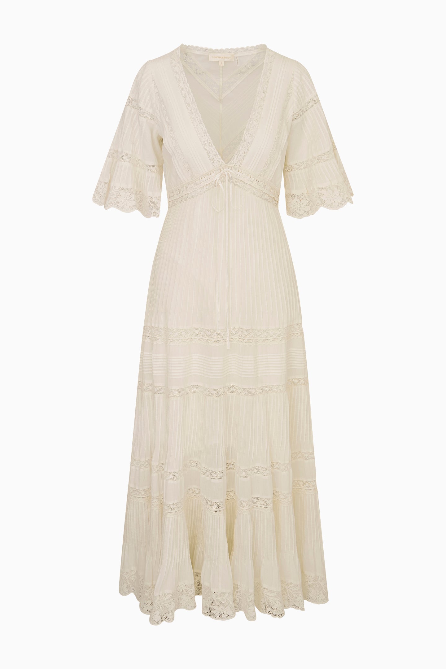 LoveShackFancy Women’s Marlowe Cotton Midi Dress | Off White