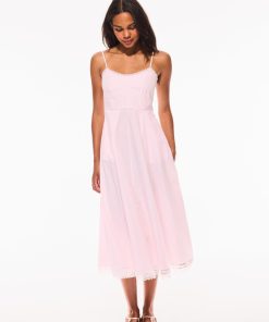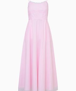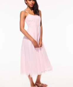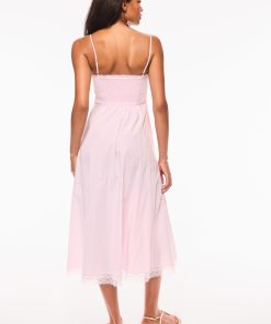 LoveShackFancy Women’s Sandara Cotton Pinstripe Midi Dress | Pink Riviera