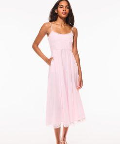 LoveShackFancy Women’s Sandara Cotton Pinstripe Midi Dress | Pink Riviera