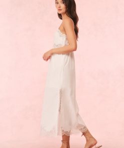 Classic in all the right ways, the Vinca Dress makes its debut. Designed from a crisp, poplin cotton fabric, this easy midi dress features vintage-inspired lace details stripped throughout the waist and at the hem, while a sweet bow detail sits at the chest. With a straight shape and loose fit, this piece features a straight neckline, adjustable spaghetti straps, and a straight column skirt with slits at both sides for a playful finish.