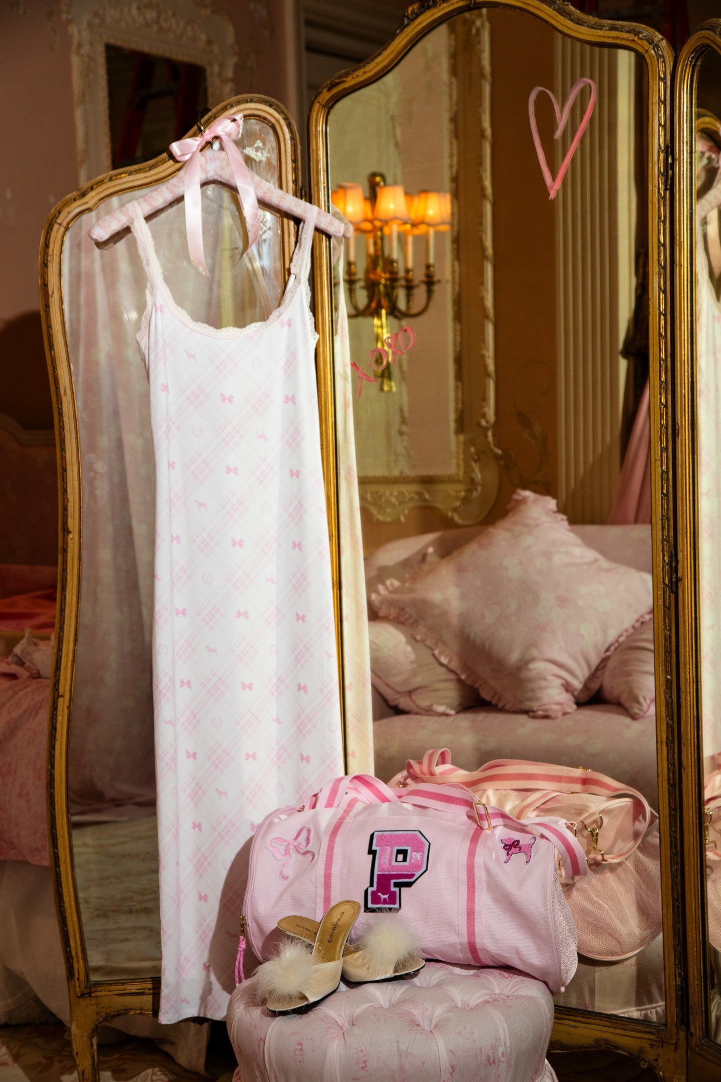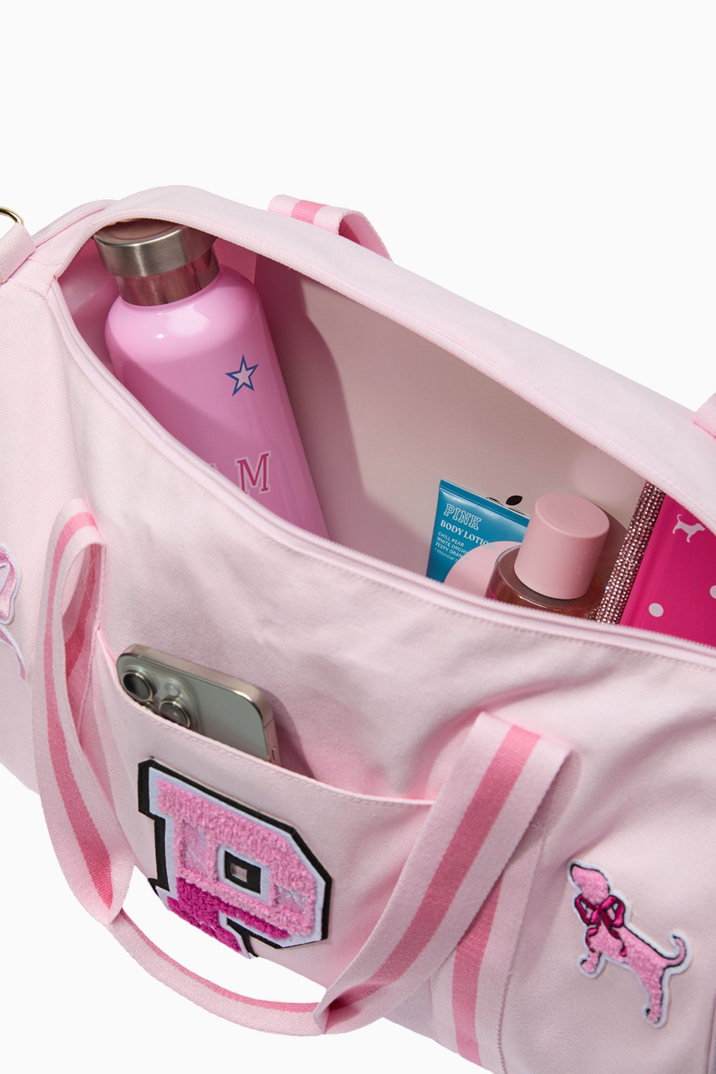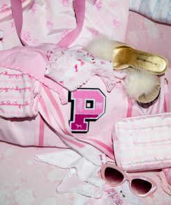 Introducing the Duffle Bag from the exclusive, limited-edition PINK x LoveShackFancy collaboration. This does-it-all Duffle has your pick of pockets, a zip closure to keep everything safe, and two (yes, two!) handles so you’ve got grab-and-go options. The cutest part though? The LoveShackFancy x PINK-inspired patches on the outside and the “5 rules of pink” stitched to the interior pocket. J’adore.