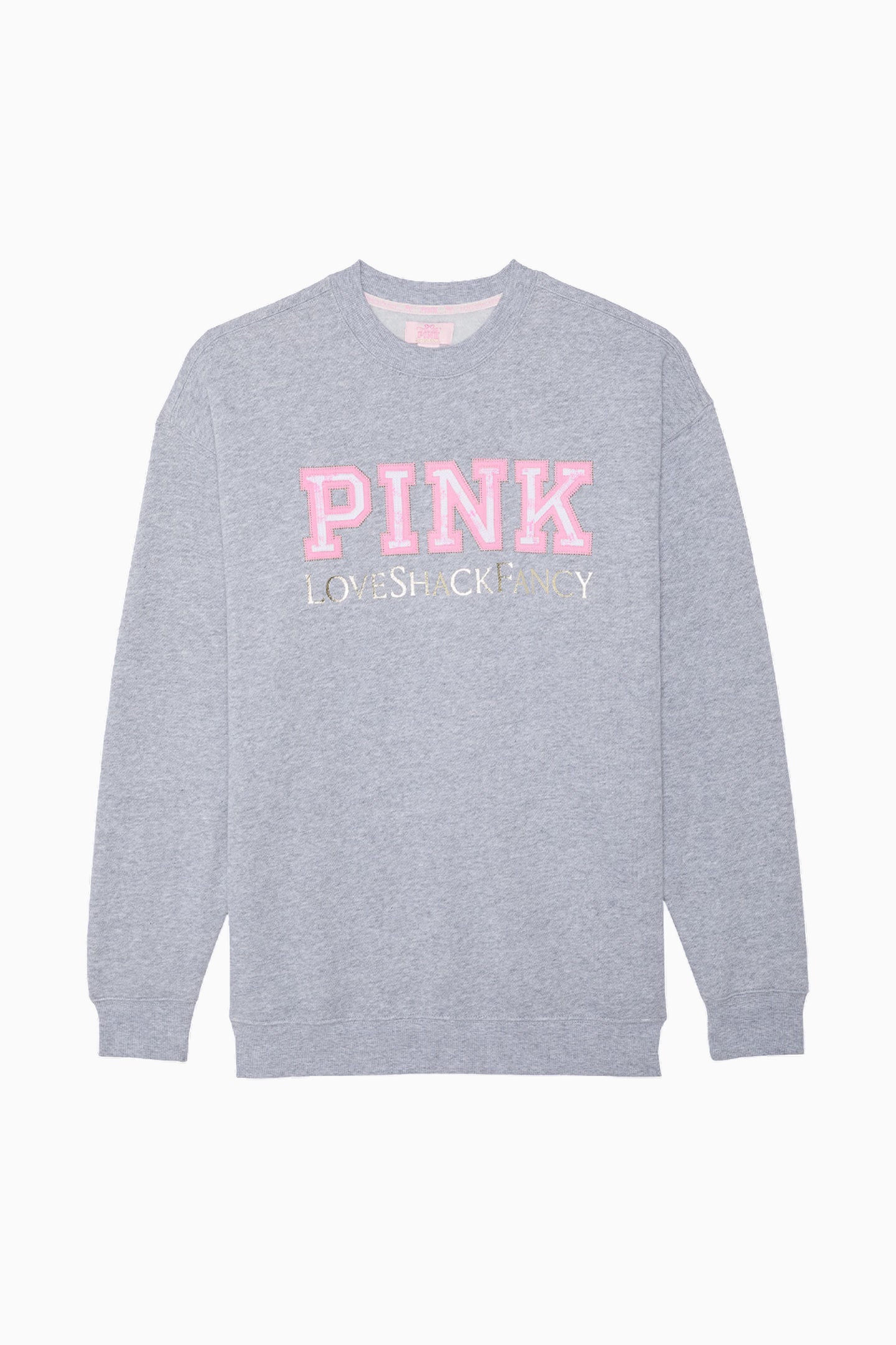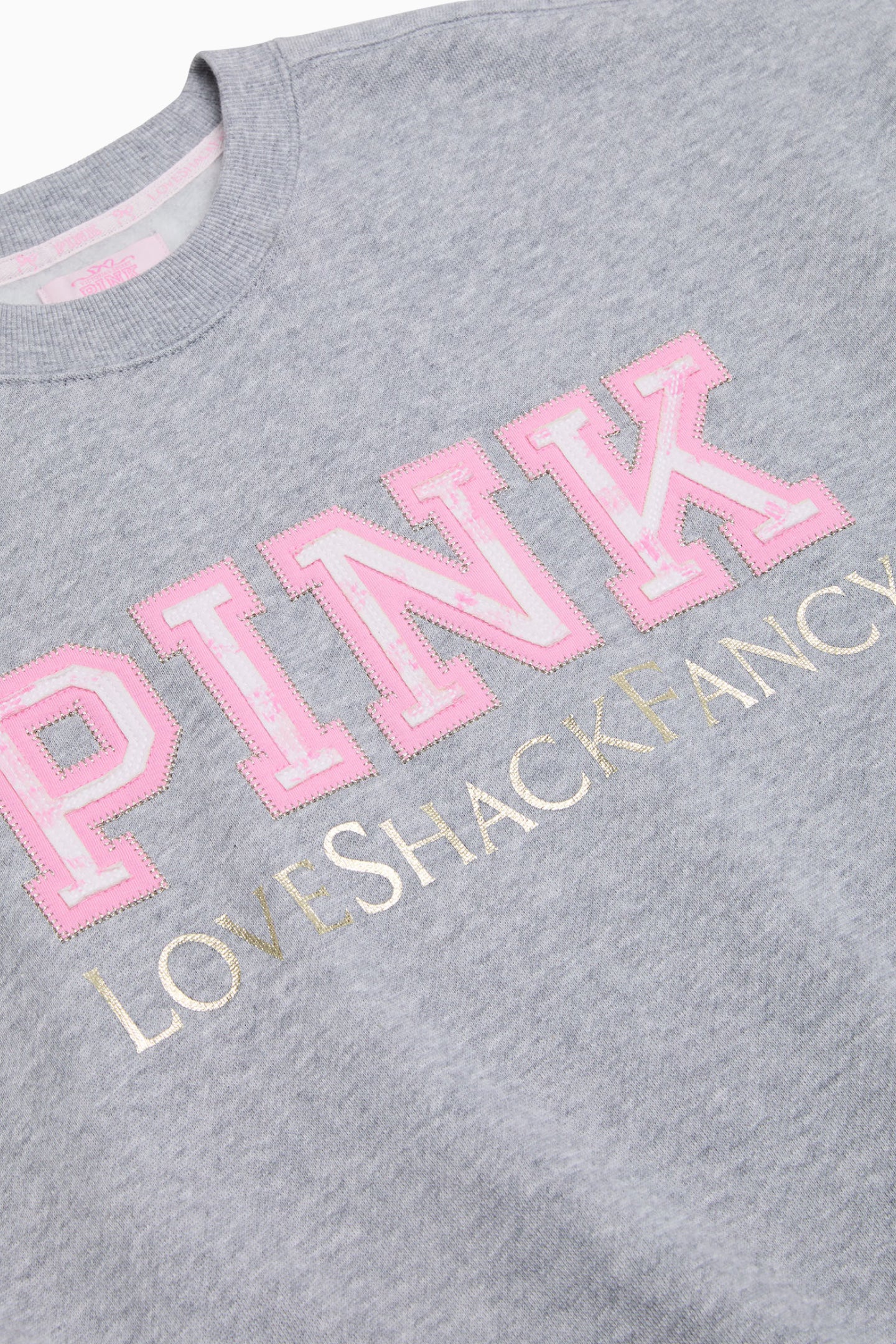 Introducing the Oversized Crew Sweatshirt from the exclusive, limited-edition PINK x LoveShackFancy collaboration. This fleece-lined fave is already *so* easy to love, but throw in three new extra-girly options to choose from, including a floral with bling finishes, a soft pink hue, or comfy cool grey? Obsessed. FYI, she’s a perfect match with the PINK x LoveShackFancy Wide-Leg Sweatpants. Love that for you (and your wardrobe).